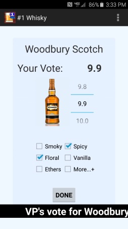 向左滑动,查看活动中所有的威士忌。单击“投票”将使屏幕转动到细节位置。 -